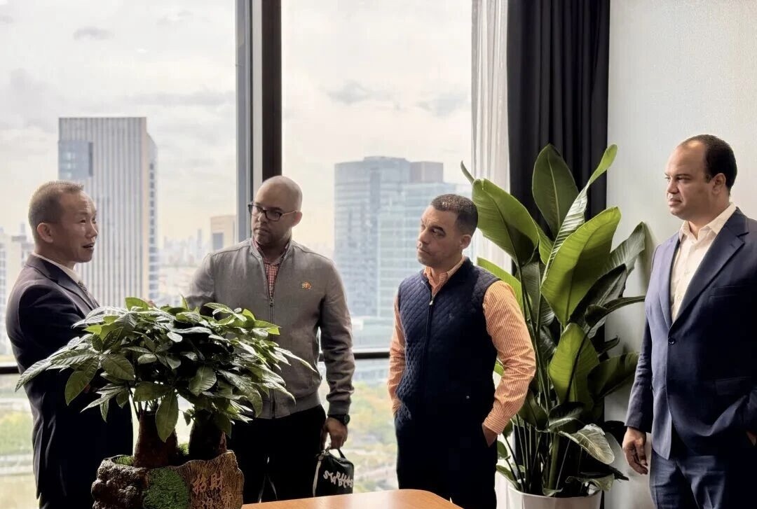 朱迪会长(左二)、谢顺鑫董事长(右一)与多米尼加驻沪总领事馆一行参观场地