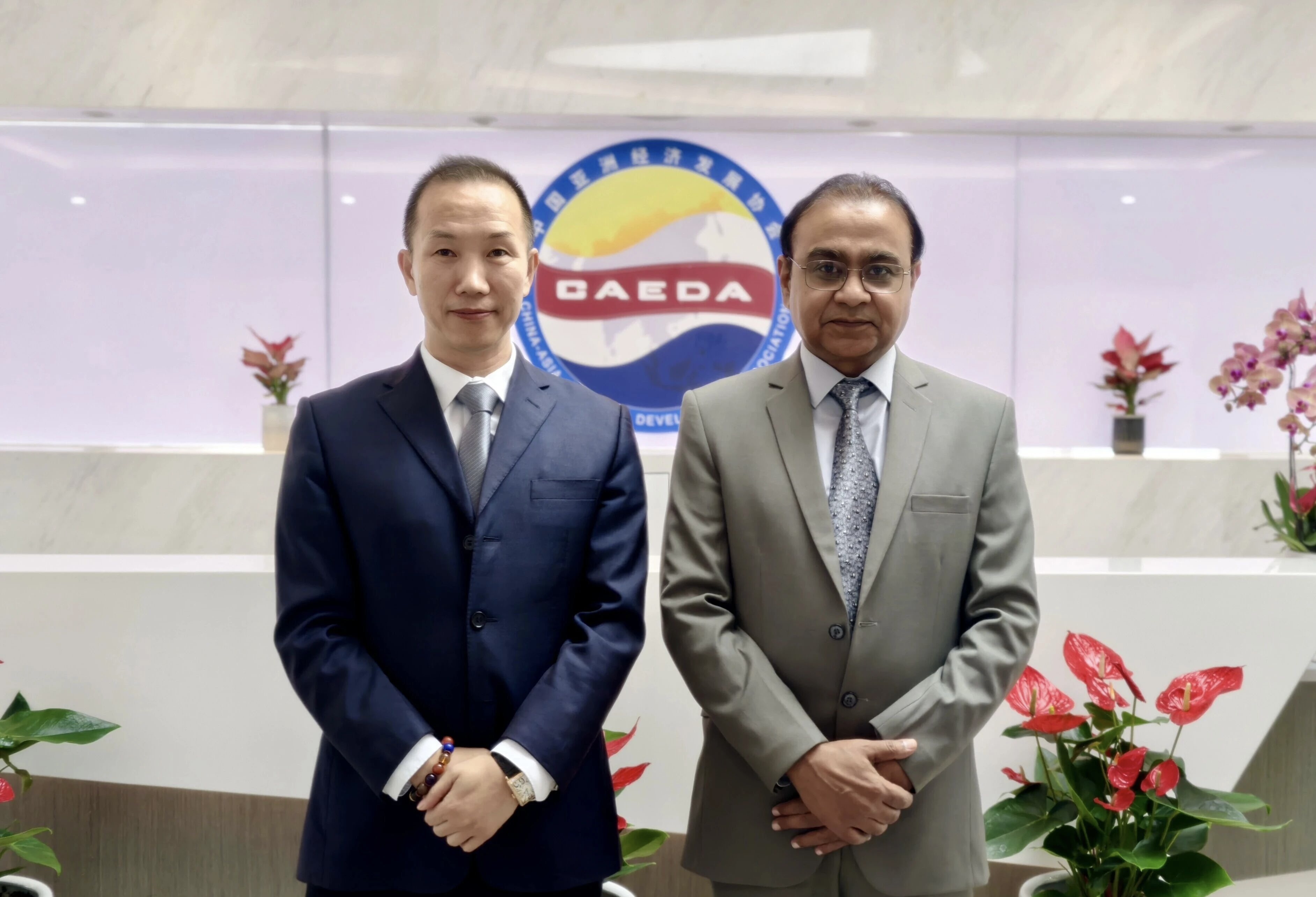 委员会全球建材供应链中心董事会主席吴加展(左)与总领事Carlos Mendieta(右)合影