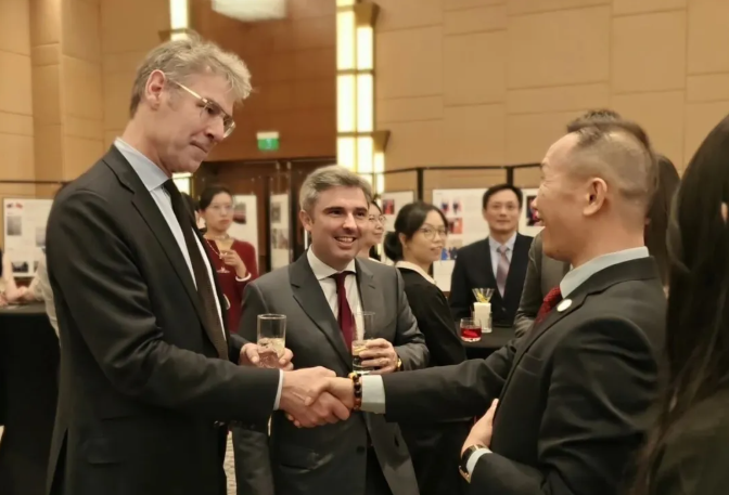 朱迪会长与荷兰驻上海总领事Koen Sizoo(左一)、法国驻上海总领事Joan Valadou(右一)亲切交谈