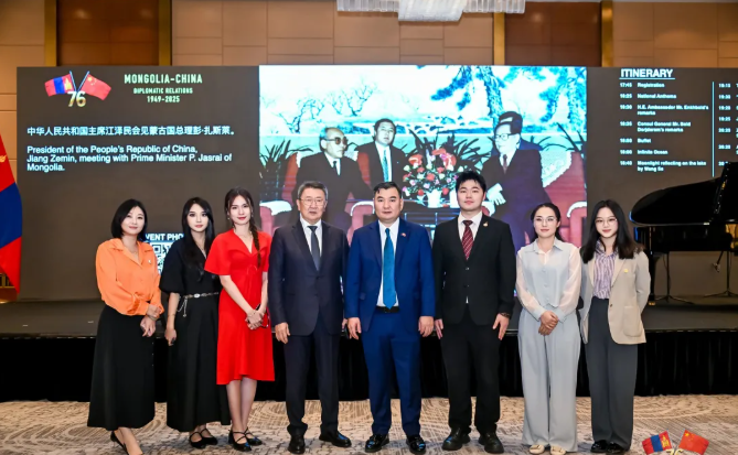 从 1949 年建交到如今共建 “一带一路” 与 “草原之路” 战略深度对接,中蒙两国在矿产资源、能源电力、跨境物流等领域合作成果丰硕。此次上海招待会的举办,不仅是 76 年友好历程的重要注脚,更成为推动中蒙全面战略伙伴关系向更高水平发展的新起点。