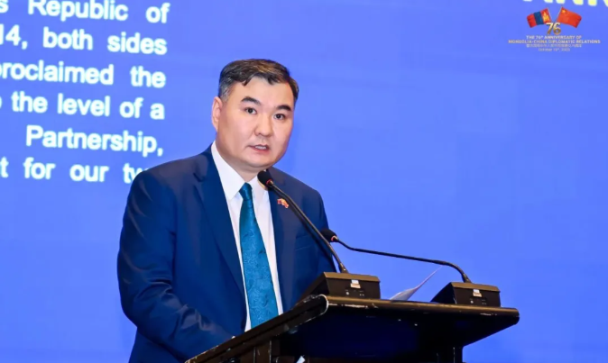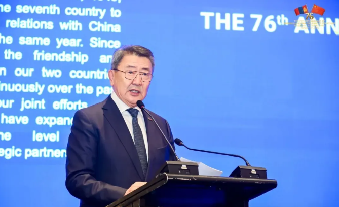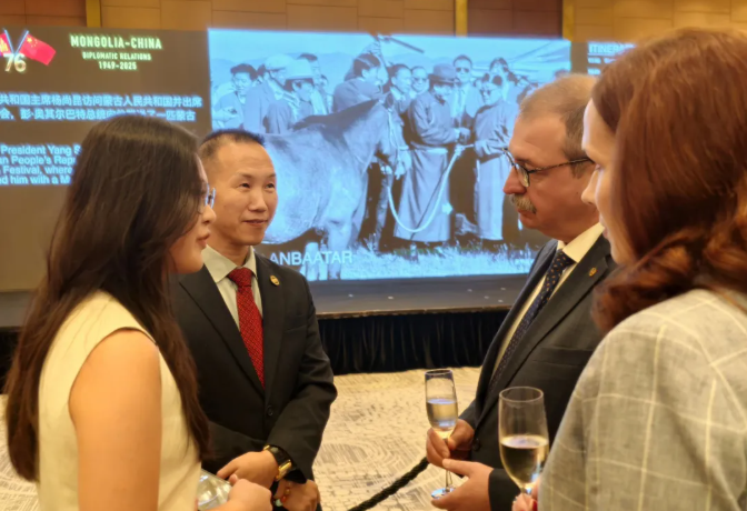 蒙古驻中华人民共和国特命全权大使恩赫包勒德阁下在活动中发表致辞,他回顾中蒙建交的历史起点,提到“在中国人民于1949年10月1日宣布成立中华人民共和国后不久,蒙古于同年10月16日成为第七个与中国建立外交关系的国家”,并着重强调 “自那个具有历史意义的日子起,两国之间的友谊与合作在过去76年中不断加深,直至今日达到了高水平”,言语间满含对中蒙双边关系发展的肯定与期许。