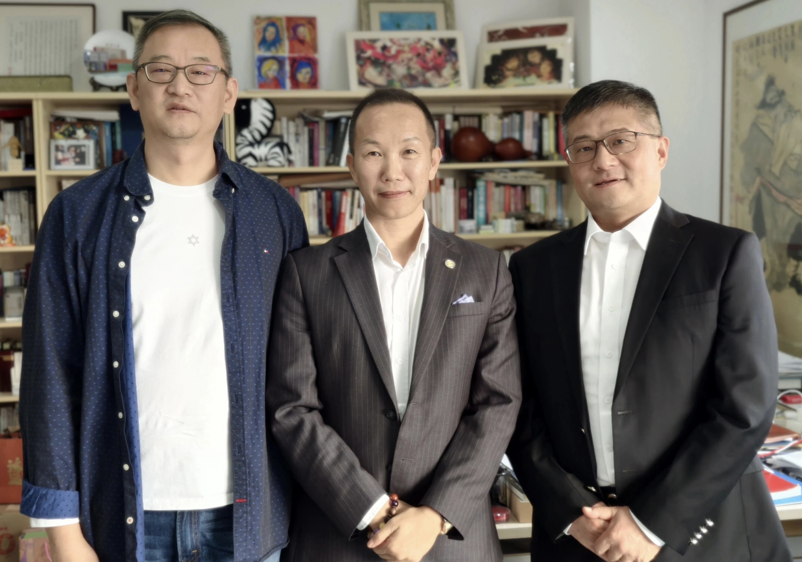 朱迪会长(中)与百事通董事长冯子豪(左)、副总裁金振华(右)合影