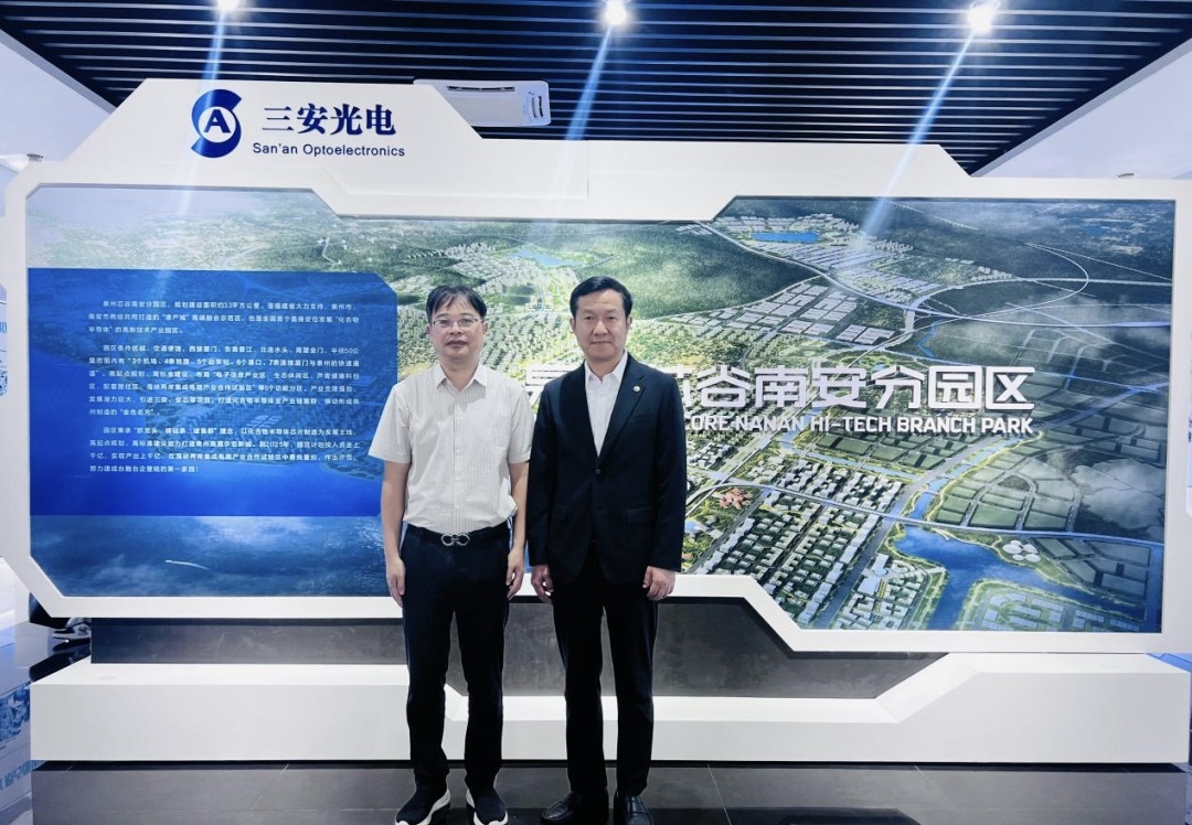 随后,代表团前往泉州芯谷南安科创中心、泉州三安半导体项目以及联东U谷产业园进行考察。南安市政府副市长黄泉春陪同考察,并详细介绍了南安在半导体等高新技术产业的布局、平台建设与企业培育情况。