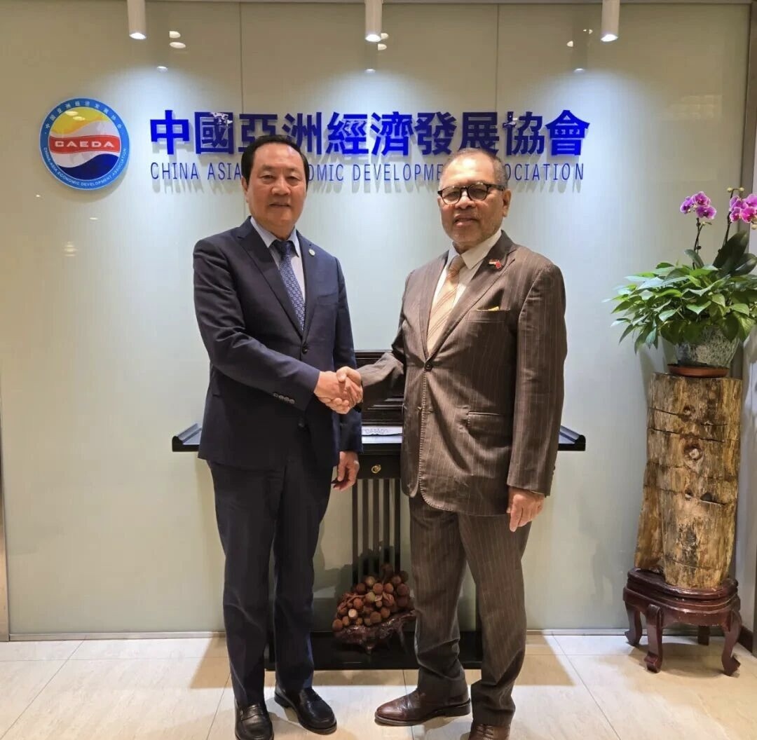 2025年10月31日,权顺基会长在协会贵宾室与来访的印度尼西亚共和国驻华大使周浩黎H.E.Mr.Djauhari Oratmangun交流座谈。出席座谈的亚经协成员有,常务副会长尚寿山、李学斌、方明,副会长邵剑彪、朴龙日、法明,副秘书长牛建秀、彭慧,秘书处王依然,北京瀚理律师事务所合伙人欧阳瑶蓝等;印尼驻华大使馆成员有,印度尼西亚共和国驻华大使馆经济处参赞黄丽香、经济处职员苏琳琇、大使秘书林丽珠等。