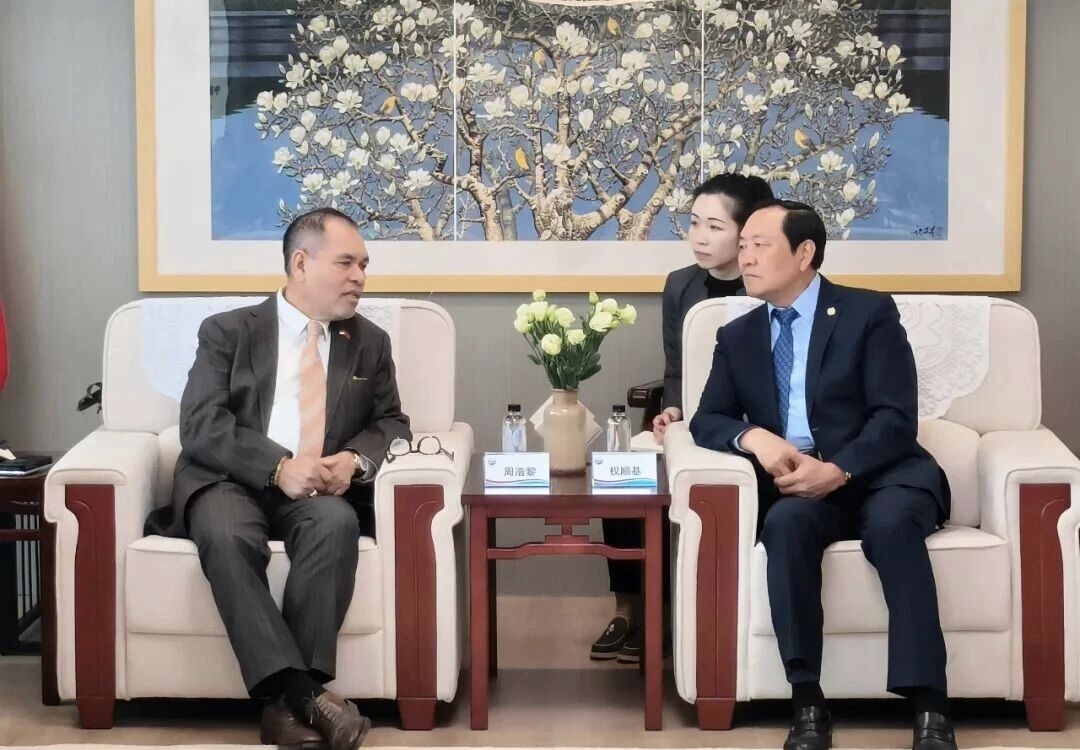 权顺基会长向周浩黎大使介绍了今年12月8日-10日,亚经协与海南省贸促会在海口市联合主办的2025东亚经贸合作论坛的有关情况,说明届时将有多个国家的政府、企业代表200余人参加论坛,并希望周浩黎大使能够出席论坛给予支持。